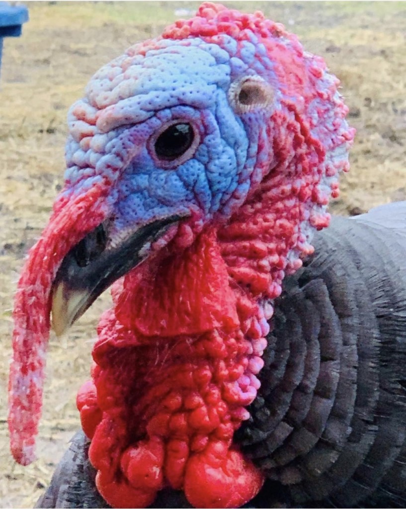 Tank is a handsome chap that arrived at Blackbird Ranch the summer of 2019 with his best-bird-bro, Morty. Both Tank and Morty and 8 other turkeys were found wandering the busy streets of downtown Seattle! No one really knew why they were there, or where they came from. After no one claimed them, they were placed in sanctuary care. We are head over heals in love with Tank and his buddy, Morty and adore their sweet, soft chirps and vocalizations. Tank loves to munch on blueberry snacks and romaine lettuce as summer treats. Tank spends his day playing in water, foraging in the grass and of course doing bro stuff with Morty, who is always close by!