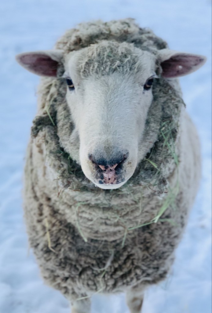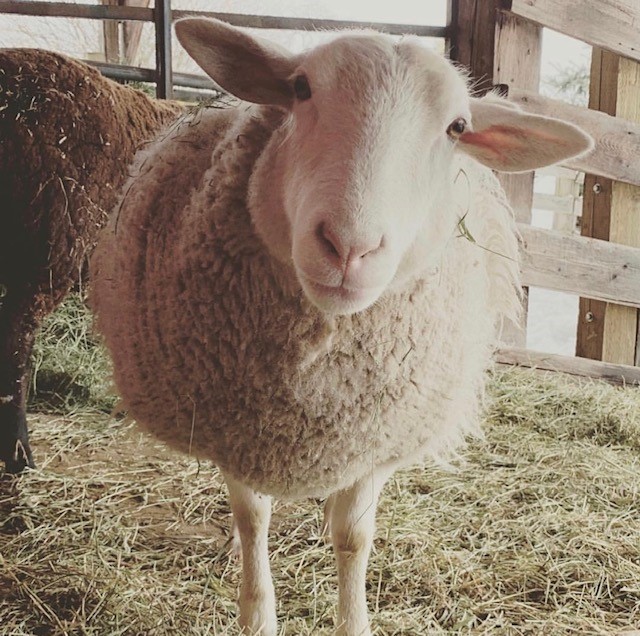 Garfunkel came to us in the Fall of 2019, after living his former life as a breeder ram on a big farm (he has since been neutered). The farmer was planning to shoot Garfunkel after he claimed that he “made ugly babies”, which is not only horribly sad but hard to even believe! Garfunkel looked as though he’s never been shorn either. He must have had at least 3 years of wool growth on him when he arrived. Garfunkel is a little shy, but is coming around and is more and more trusting everyday. He loves to roam the hillside and graze all day with his besties, Clancy and Darby.